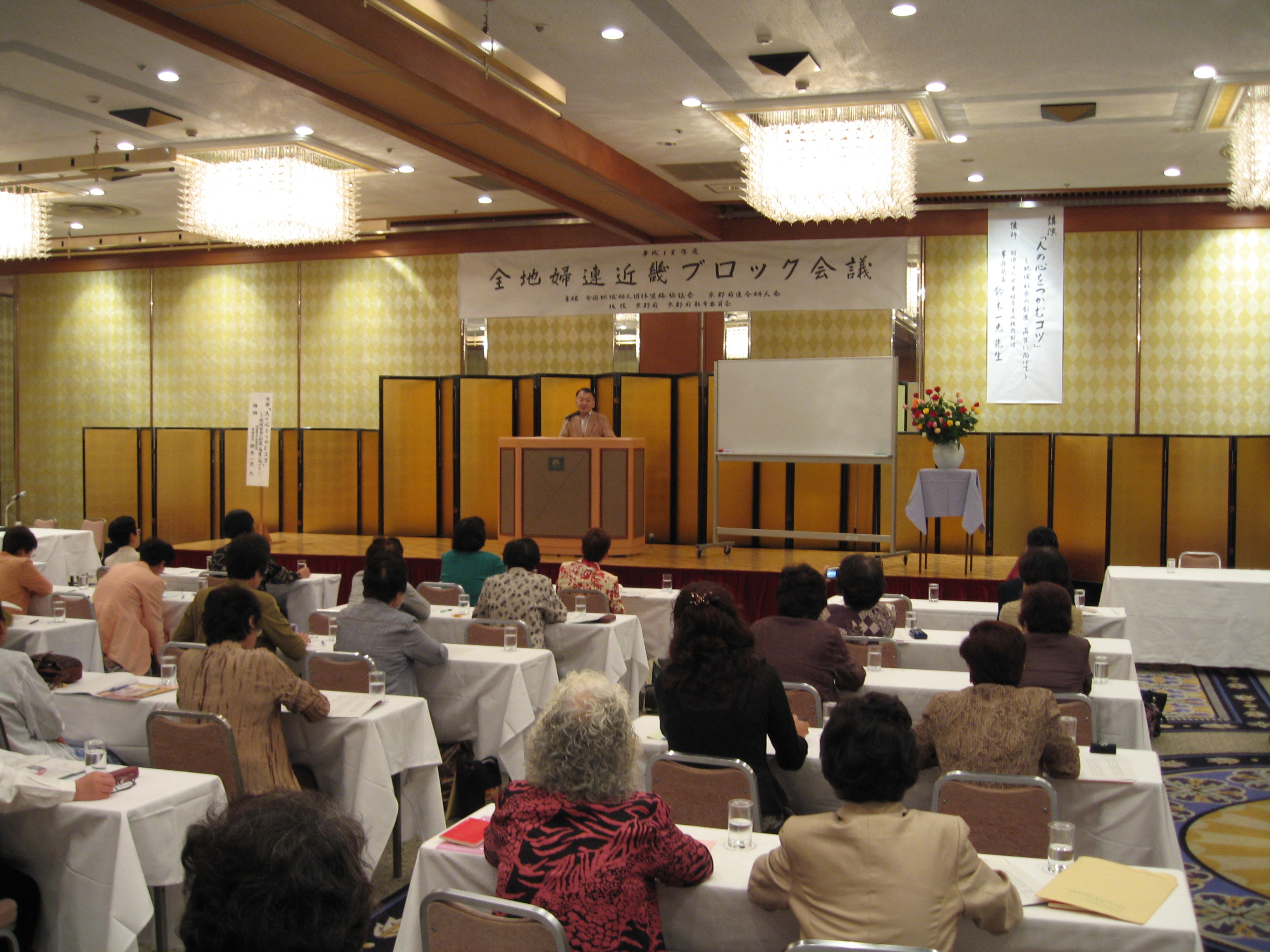 ■ 平成18年度 全地婦連近畿ブロック会議(京都開催) 日時:平成18年9月21日(木)〜22日(金) 会場:私のしごと館(21日) リーガロイヤルホテル京都(21 〜 22日) 地域に根ざした婦人会活動のさらなる活性化のため、会員各自の可能性や自分のライフワークを考える 機会となりました。 「私のしごと館」ではしごと体験を行い。会場をリーガロイヤルホテル京都に移して、情報交換会や全体会 では近畿7府県の会員が一堂に会し、各地の実践や意見の交流をしました。 また、講演会は、財団法人児 童健全育成推進財団の鈴木一光事務局長を招き、「人の心をつかむコツ」と題して、今の子どもや親を知り、 地域の教育力を高めるポイントを大変わかりやすく教わりました。 |